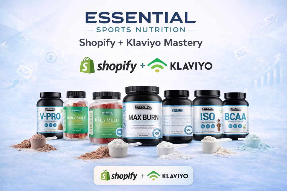 Essential Sports Nutrition (ESN), a premium supplement brand ("Certified nutrition. Clean Ingredients. NSF Certified."), tapped us for a high-performance Shopify store featuring Pre-Workout, Protein Powders, BCAAs, and bundles. Our Klaviyo integration supercharged email marketing, nurturing leads for categories like Women's Health and goal-based supplements (Tighten & Tone,…